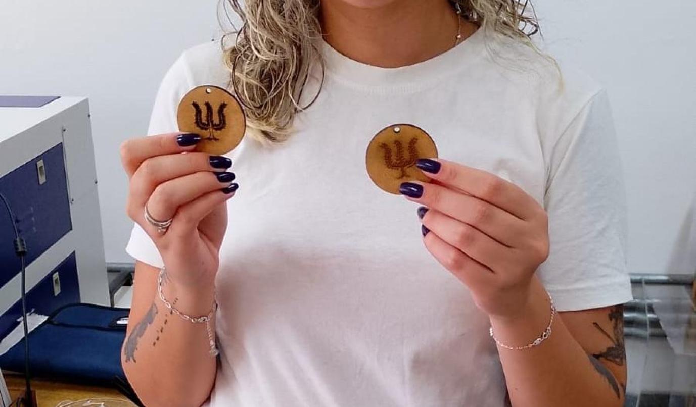 Fizemos o chaveiro para finalizar o nosso projeto de estágio no Telecentro.