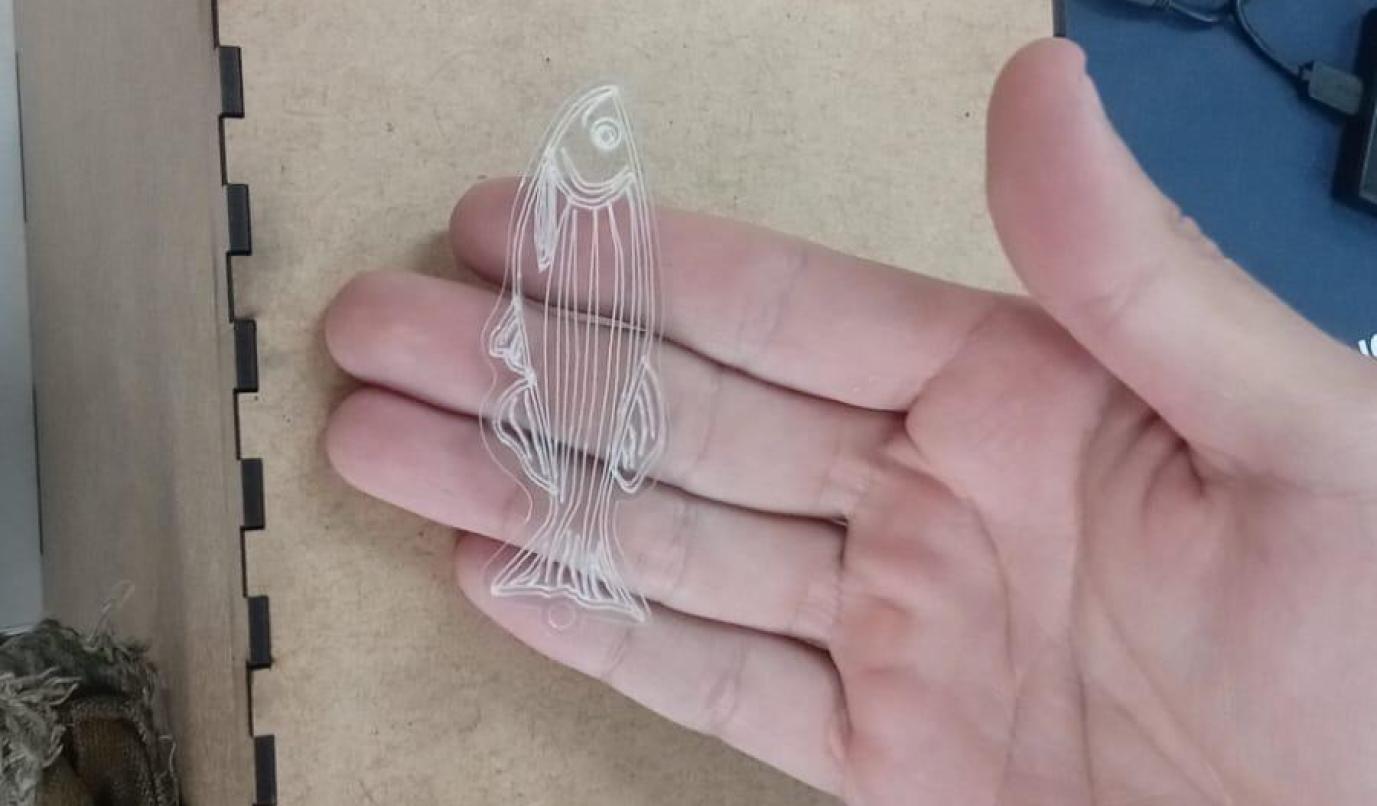 Chaveiros de Zebrafish feitos em chapa de acrílico transparente 2mm com gravação e corte laser.