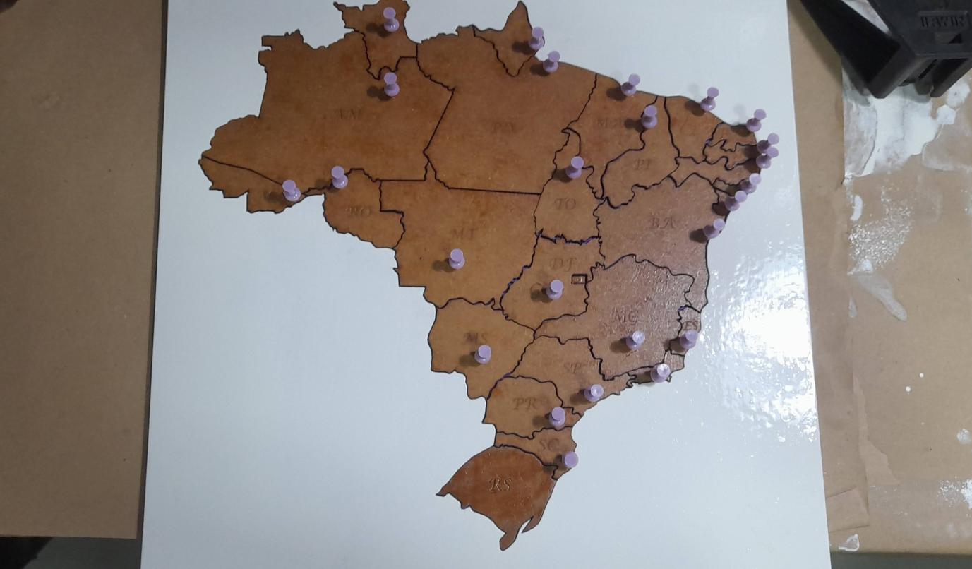 Um quebra cabeça com a divisão de estados do brasil, confeccionado em MDF 3mm.
