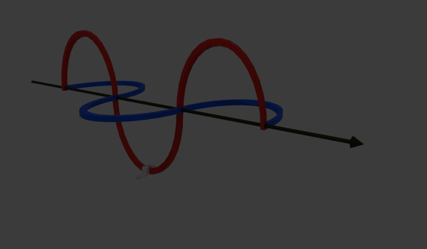 Impressão 3D de um onda eletromagnética (OEM), composta por dois campos, quais sejam: um campo elétrico e um campo magnético.