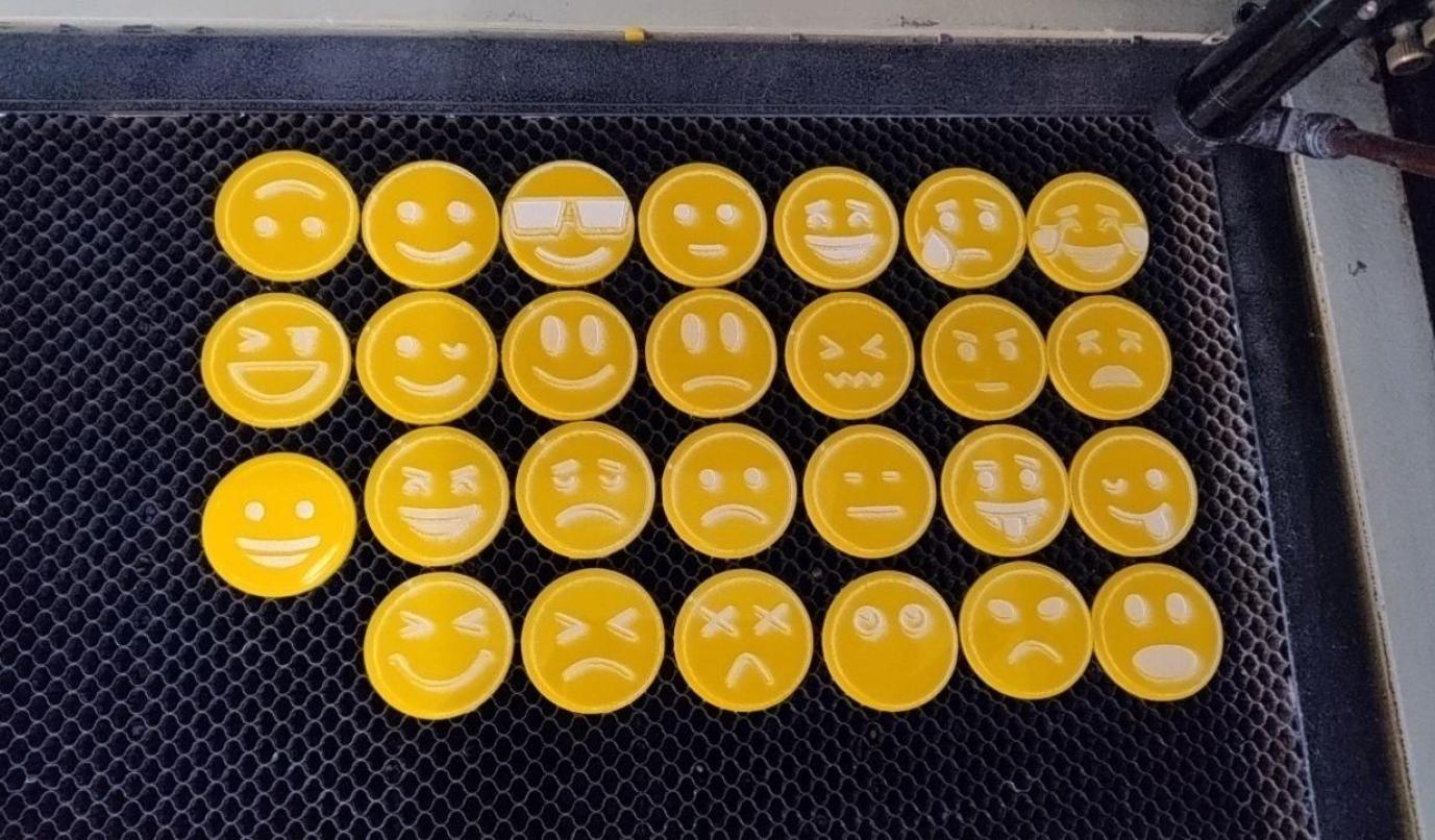 Foi criado estes amojes para que acompanham com caixa surpresa. Com a maquina corte a laser
