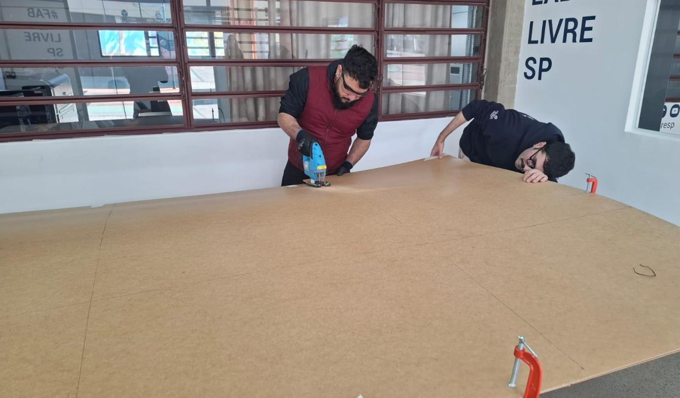 A partir das técnicas e conhecimentos teóricos aprendidos com a equipe do Fablab, estudantes que compõem o Grêmio Estudantil da EMEF CEU Perus serão convidados a desenvolver as técnicas e o manuseio dos equipamentos disponíveis. Para o projeto em questão, avalia-se, inicialmente, o uso da máquina de corte a laser e dos computadores para a elaboração do design.