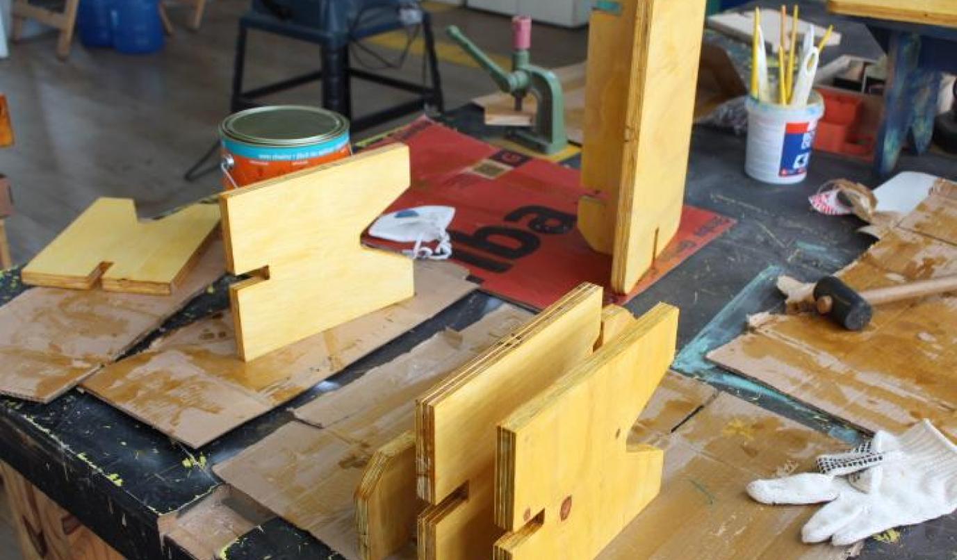 Utilização de ferramentas dentro da marcenaria como serrotes, maquinas de corte tico tico, Martelos, serras , Lixas e verniz para acabamento