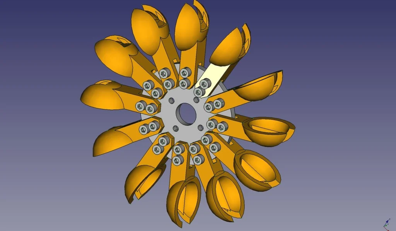 Impressão 3D das pás do gerador, cujo formato é complexo demais para a manufatura